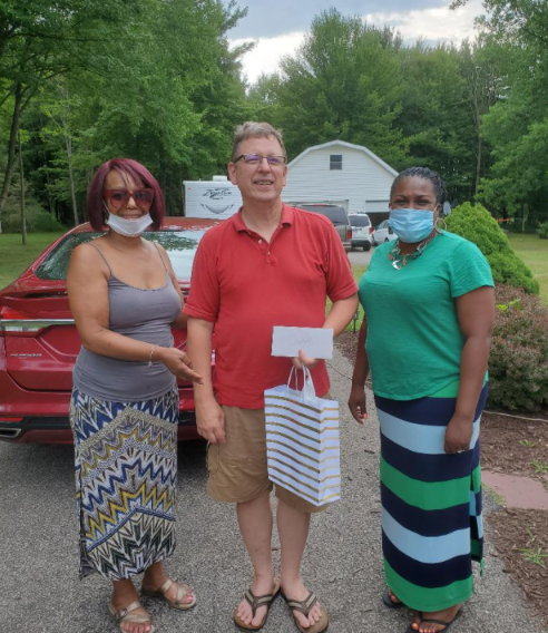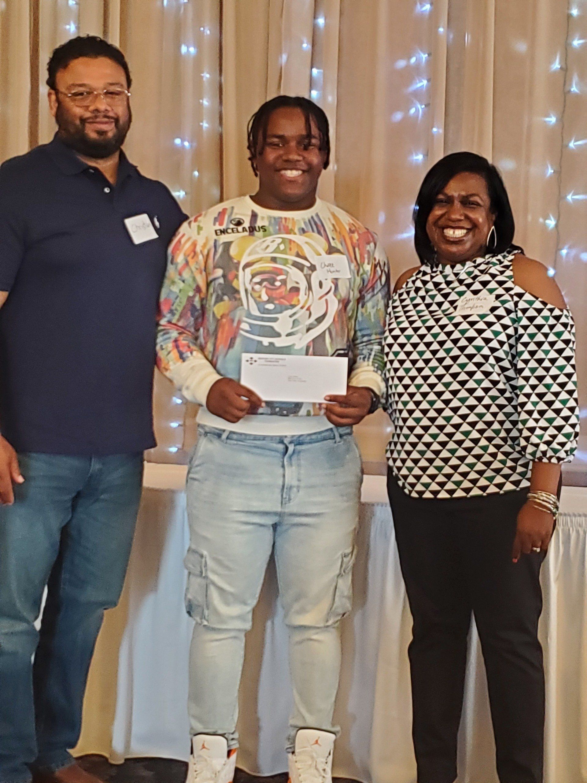 ButtonA. Fuhrmeyer-2020 Recipient (Proud Dad) with Mrs. Jones & Mrs. Thompson – Scholarship Co-Chairs